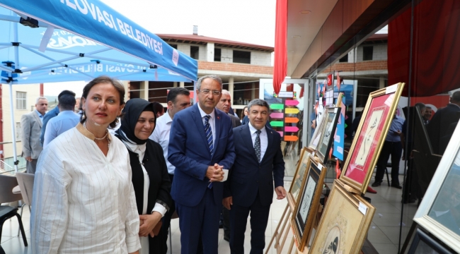 Toltar’ın ardından konuşan İl Milli Eğitim Şube Müdürü Nail Ekiz, “Hayat Boyu Öğrenme Genel Müdürlüğü’nün 1-7 Haziran tarihleri arasında ülke genelinde yapmış olduğu yılsonu sergileri İlimizde ve ilçelerimizde de başlamış bulunuyor. ‘Hayat boyu öğrenme’ kültüründe olan ve beşikten mezara kadar eğitimi önceleyen medeniyetin torunlarıyız. Biraz geriden gitsekte bundan sonraki süreçte kadınlarımızı daha aktif hale getirerek tüm mahallelerimizde halk eğitim merkezleri olarak eğitim yuvaları açmalıyız. 7’den 70’e herkesin eğitim ve iş becerilerini geliştirmeliyiz” dedi.