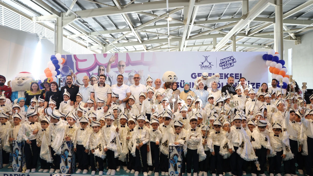 Darıca Belediyesi’nin sosyal sorumluluk projesi kapsamında her yıl geleneksel olarak düzenlediği Sünnet Şöleni, oldukça coşkulu bir şekilde gerçekleşti. Yaklaşık 350 sünnet çocuğu ve ailelerinin Darıca Belediye Başkanı Muzaffer Bıyık’ın ev sahipliğinde bir araya geldiği şölene Kocaeli Büyükşehir Belediyesi Başkanvekili Hasan Soba, AK Parti Darıca İlçe Başkanı Köksal Şakar ile sivil toplum kuruluşu temsilcileri, muhtarlar, meclis üyeleri ve binlerce Darıcalı katıldı.
