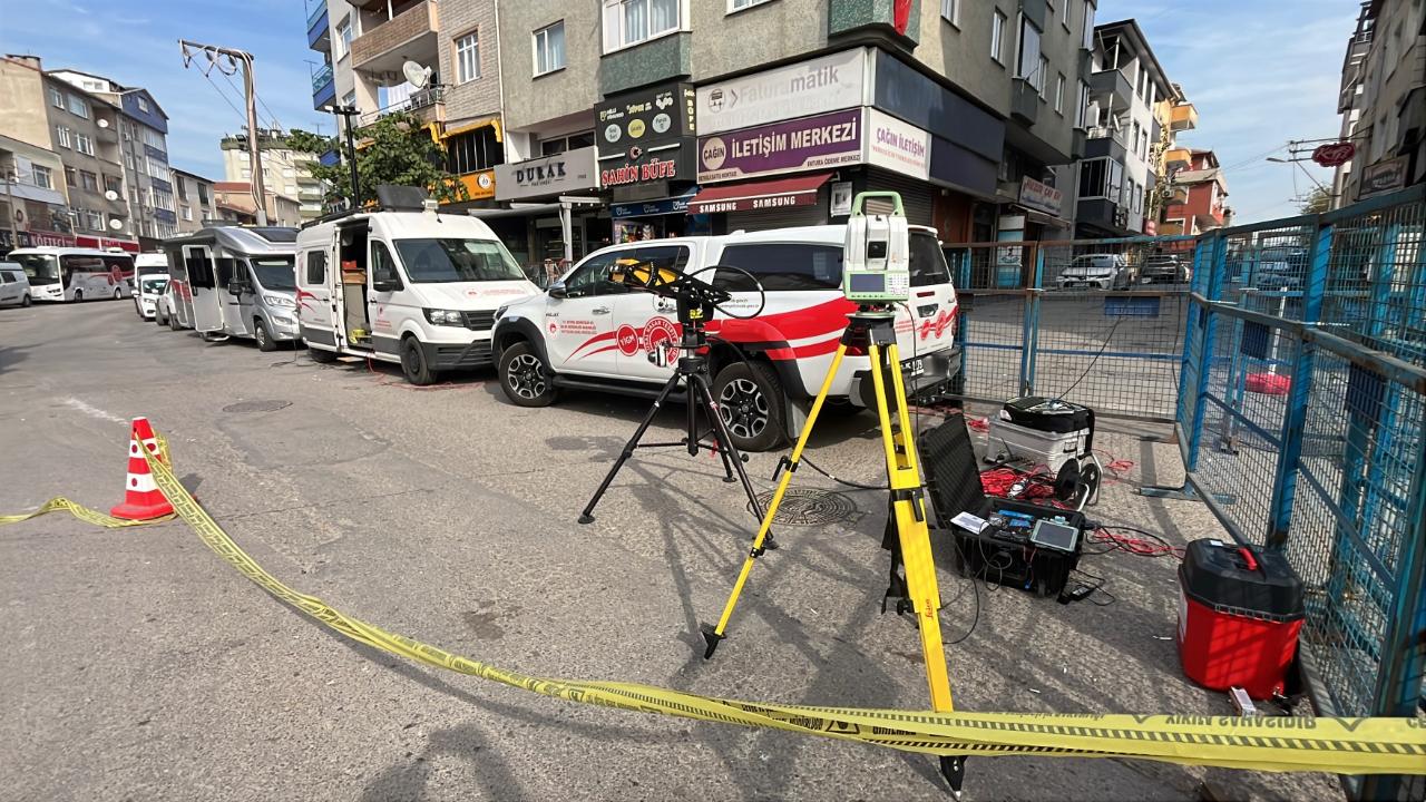 21 bina ve 252 vatandaş tahliye edilirken, uzman ekipler ölçüm aletleriyle enkazın etraftaki binalarda eğilme ya da sapmayı tespit etmek için inceleme gerçekleştiriyor.