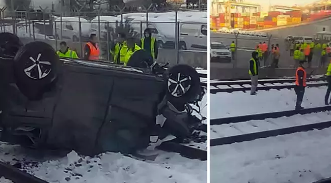 Kocaeli'nin Körfez ilçesinde gemiden indirilen sıfır araç, otoparka çekileceği sırada sürücüsünün kontrolünden çıkarak tren yoluna düştü. Kazada 1 kişi yaralandı.