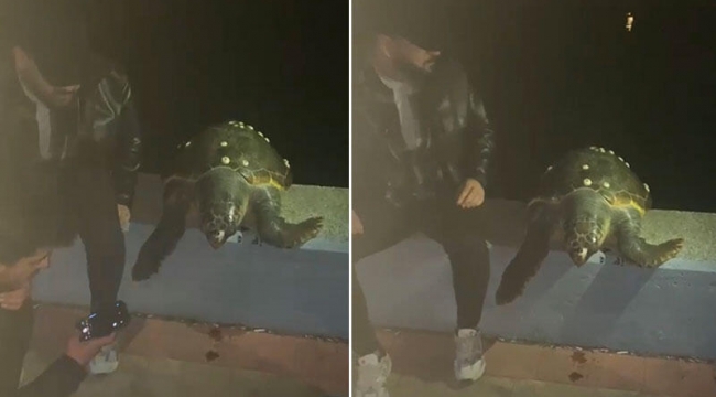 Kocaeli’nin Başiskele ilçesinde sahil şeridindeki vatandaşlar kıyıya vuran bir deniz kaplumbağası ile karşılaştı. Kaplumbağa ile fotoğraf çeken sahildekiler, sonra yeniden İzmit Körfezi’ne bıraktı.