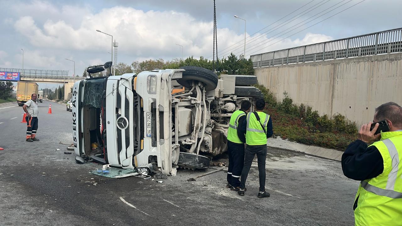 KOCAELİ'nin Çayırova ilçesi, TEM Otoyolu’nda, devrilen mıcır yüklü kamyonun sürücüsü yaralandı.