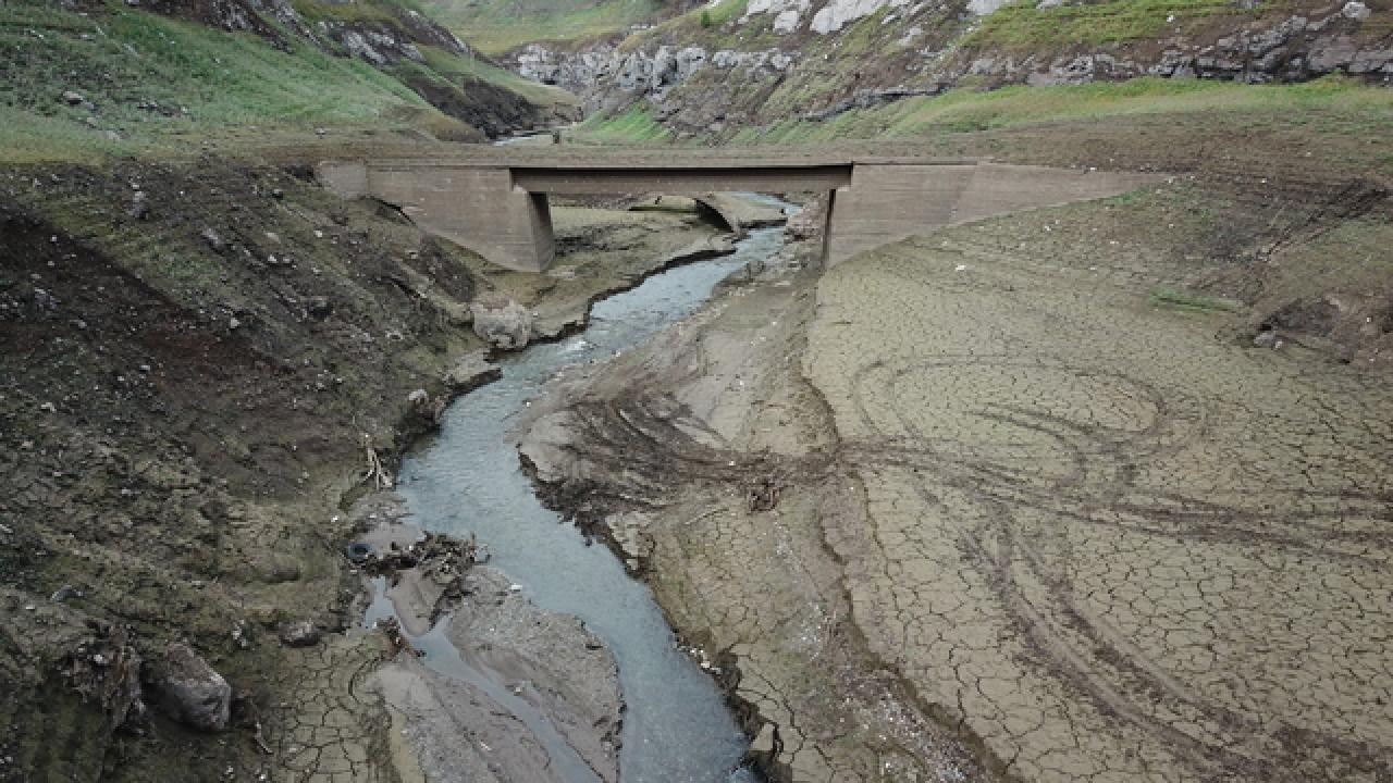 Yuvacık'ta su seviyesi yüzde 18'e geriledi; köprü yeniden gün yüzüne çıktı